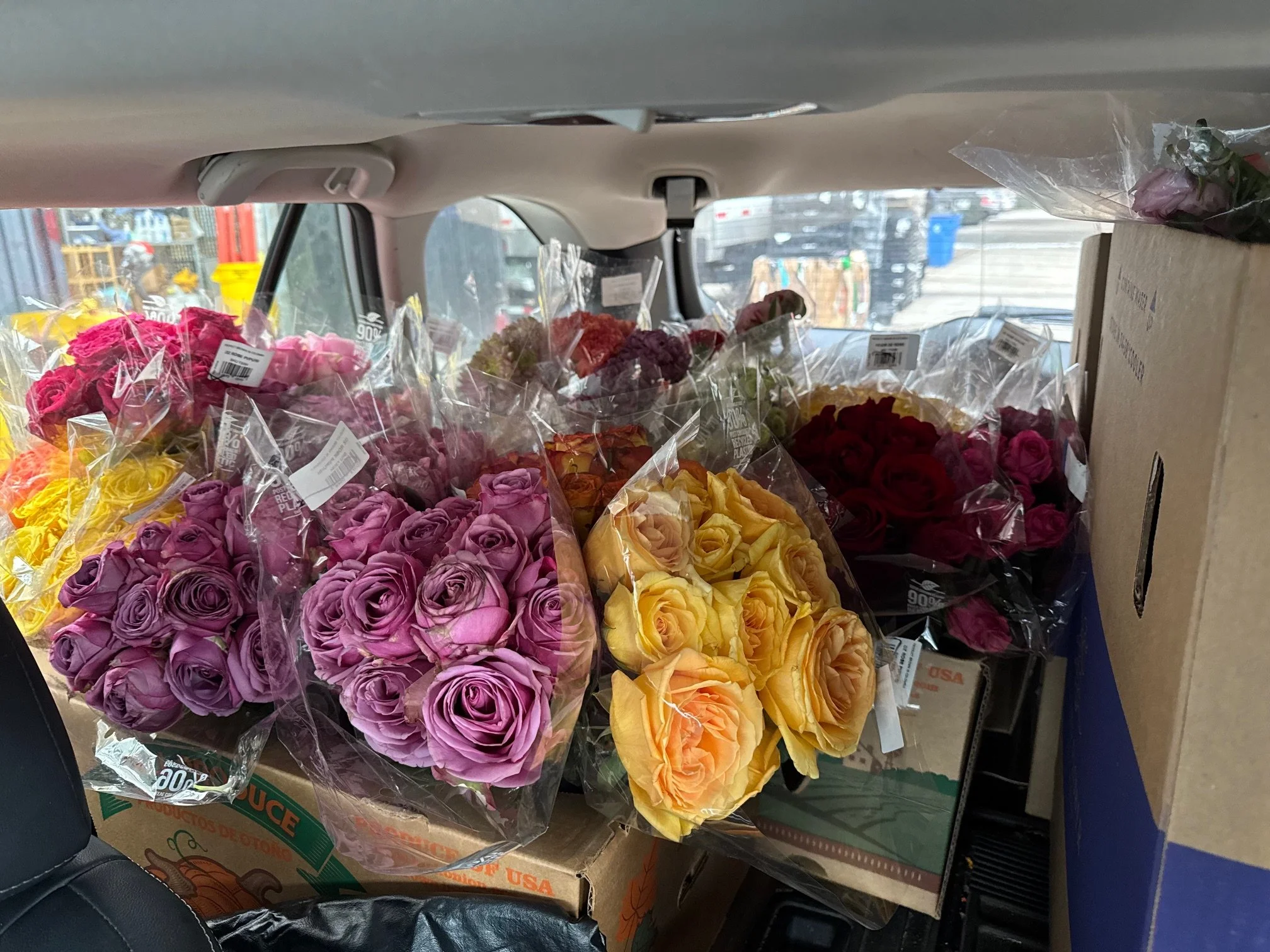 2025- Bouquets destined for patients fill a volunteer’s car.